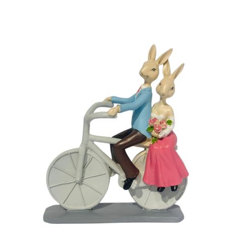 Decostilo - Figura Decorativa Pareja De Conejos En Bicicleta 20Cm | Lider Electrohogar