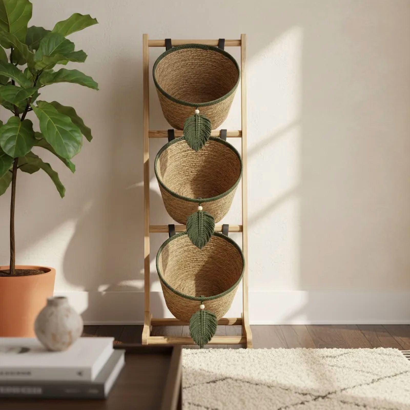 Decostilo - Estante Organizador De Ratán3 Niveles Tipo Boho