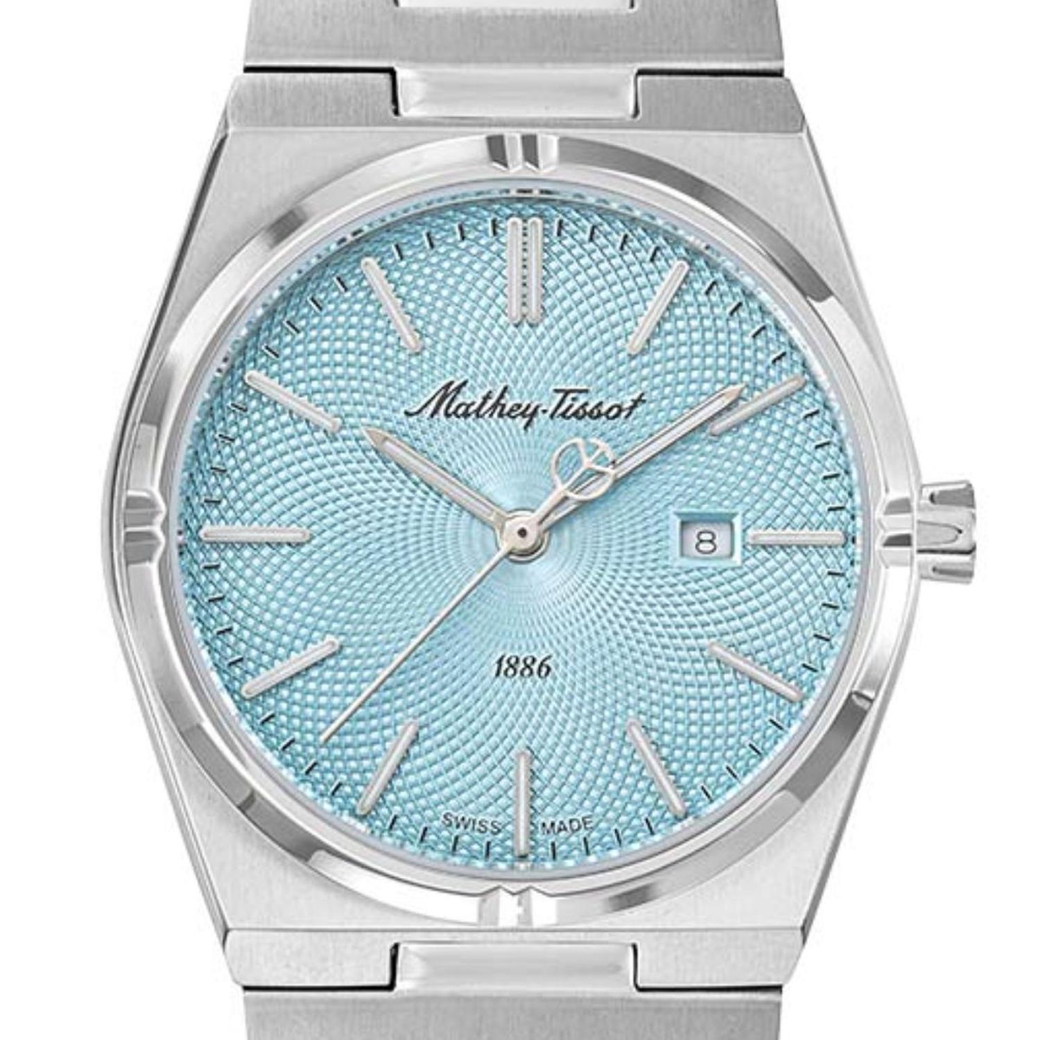 Mathey-tissot es una marca suiza reconocida por sus relojes de alta calidad y diseño elegante. fundada en 1886, combina tradición y modernidad en cada pieza. sus relojes destacan por la precisión de sus mecanismos, muchos de los cuales son automáticos, y por la atención al detalle en la manufactura. la colección abarca desde modelos clásicos hasta deportivos, todos con materiales premium como acero inoxidable y piel genuina. además, los diseños incluyen esferas elaboradas, detalles brillantes y funciones útiles, como cronógrafos y resistencia al agua. mathey-tissot ofrece una fusión perfecta de estilo y funcionalidad para los amantes de la relojería. genero: mujer tipo de maquinaria: cuarzo nombre de maquinaria: ronda 585 funciones: - fecha diametro: 34 mm material de caja: acero inoxidable 316l color de la caja: plateado cristal: zafiro tapa trasera: acero inoxidable 316l corona: presion resistencia al agua: 5 atm tipo de bisel: fijo color del bisel: plateado espesor: 9 mm color esfera: azul ancho terminal: 10 mm material correa: acero inoxidable 316l color correa: plateado super luminova: manos y marcadores d118sk