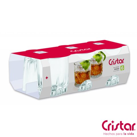 Set 6 Vasos Bajos Whisky Cristar Prisma Rocks 306Ml