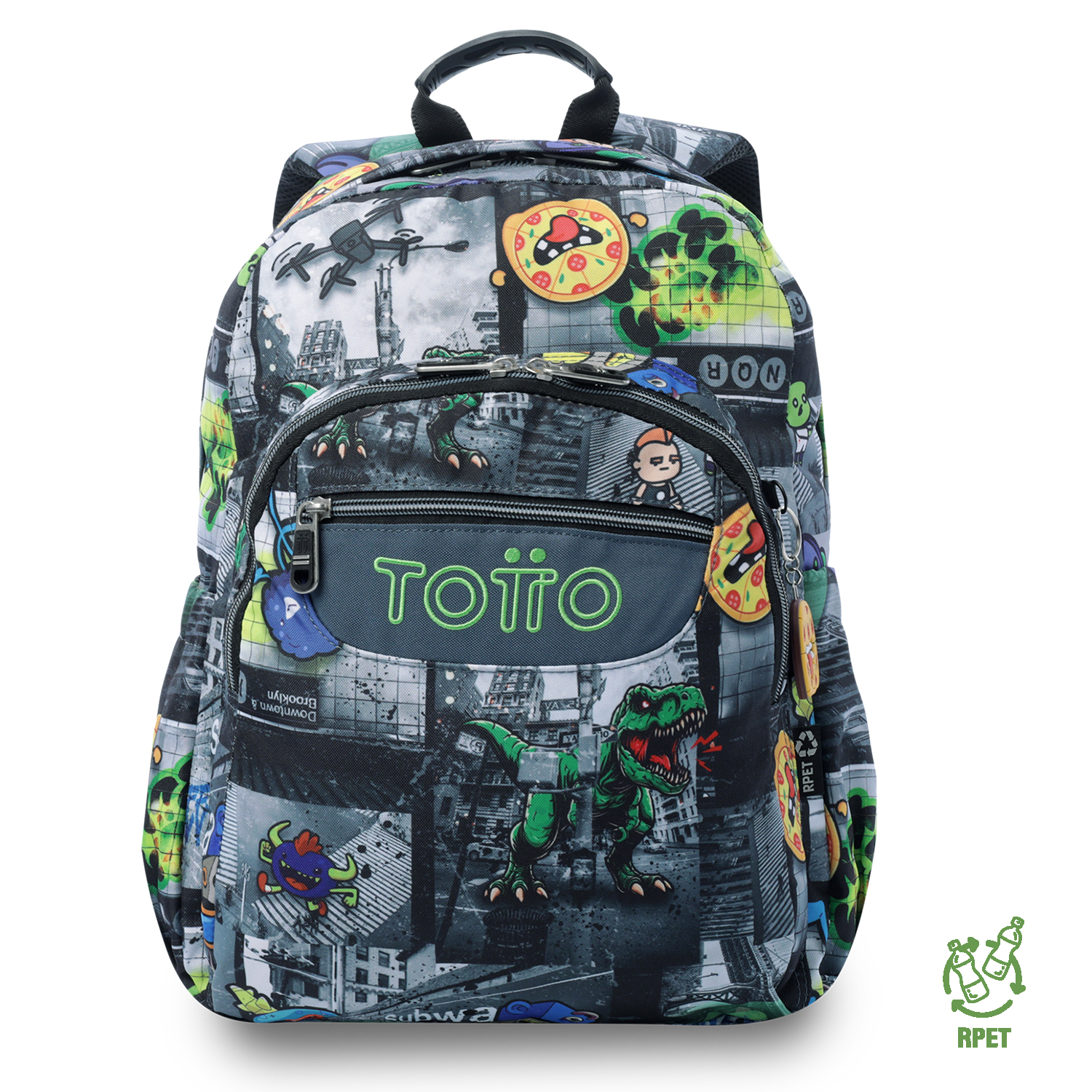 Mochila totto acuarela negra con porta pc 14", hecho de material reciclado. perfecto como mochila para el colegio. ¡llévala ahora!