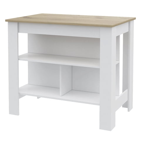 Fmfurniture - Isla Cocina 120X60X90 Cm Blanco Y Cafe Claro