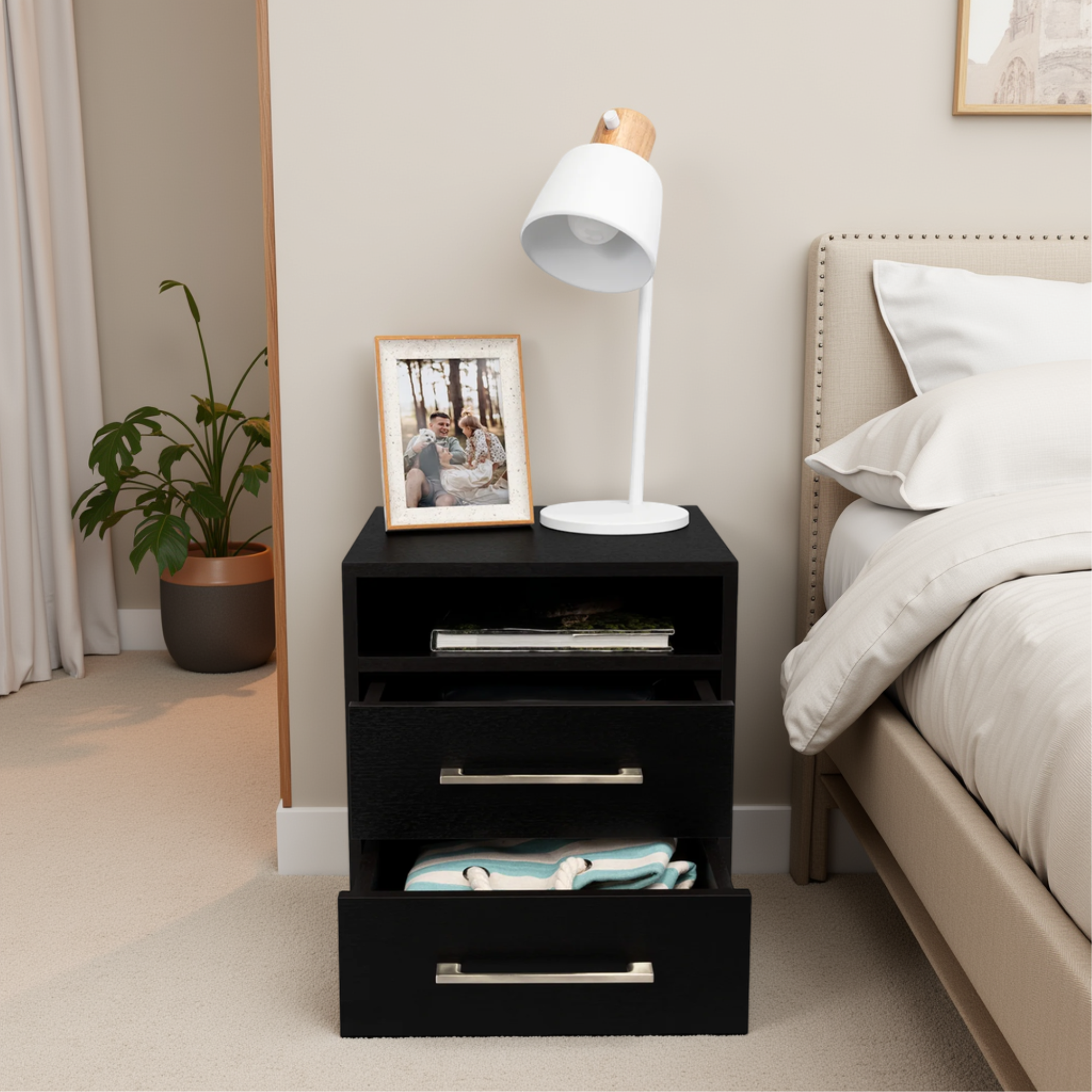 Tuhome - Velador 2 Cajones Éter Wengue 50X40X37 Cm