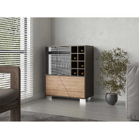 Fmfurniture - Bar Bajo 2 Puertas 8 Botelleros Fm-003O Café Oscuro Y Café Claro
