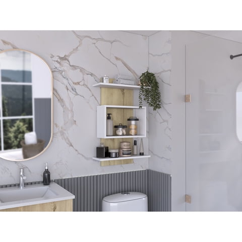 Tuhome - Mueble Auxilar Muro Baño Eco Blanco Y Fresno