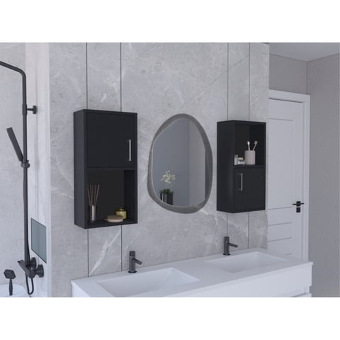 Tuhome - Mueble Auxiliar Muro Baño 1 Puerta Wengue Y Plomo