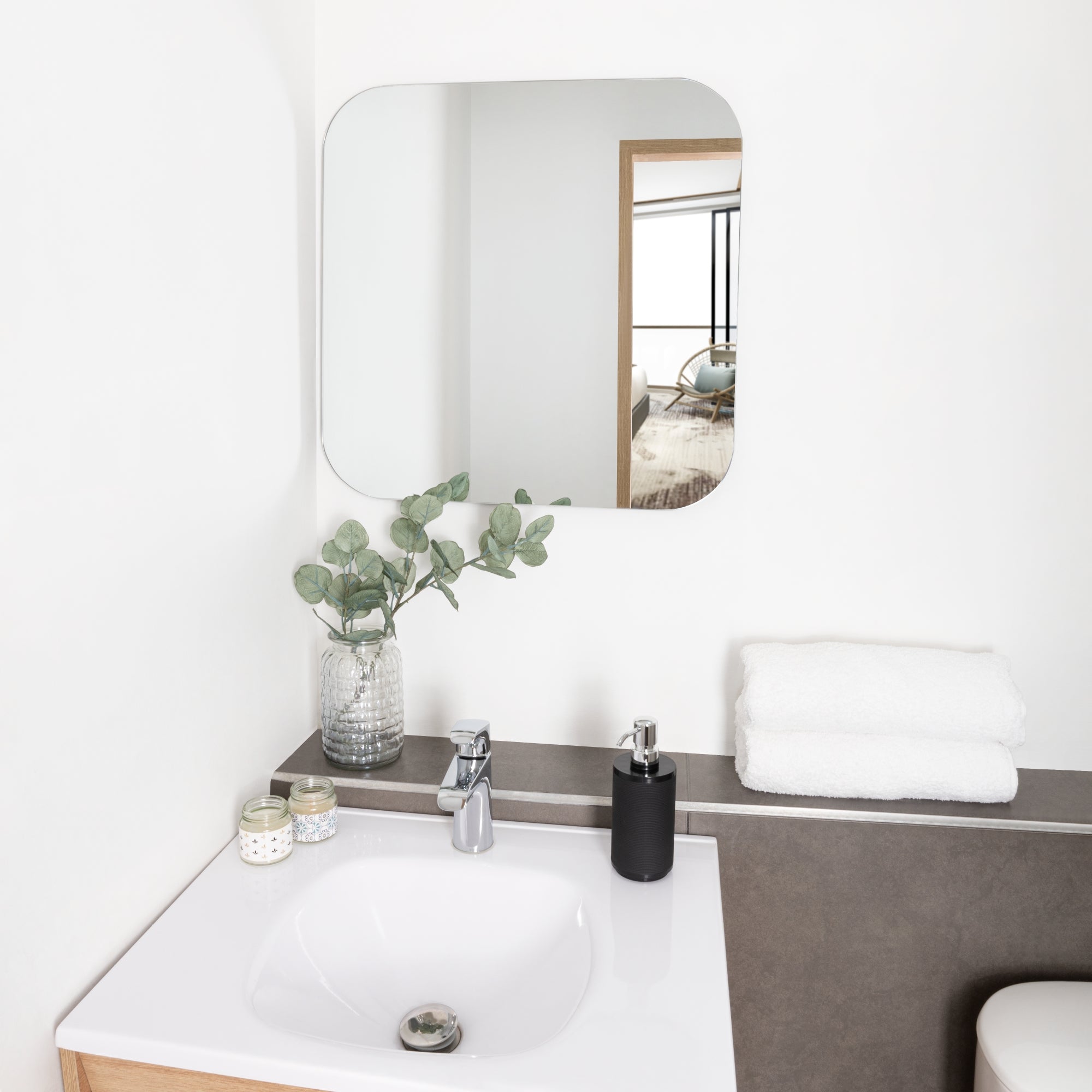 Espejo lia cuadrado 60×60 cm, de líneas limpias y modernas. su diseño minimalista aporta amplitud y luminosidad, ideal para dar un toque elegante a salas, pasillos o dormitorios.