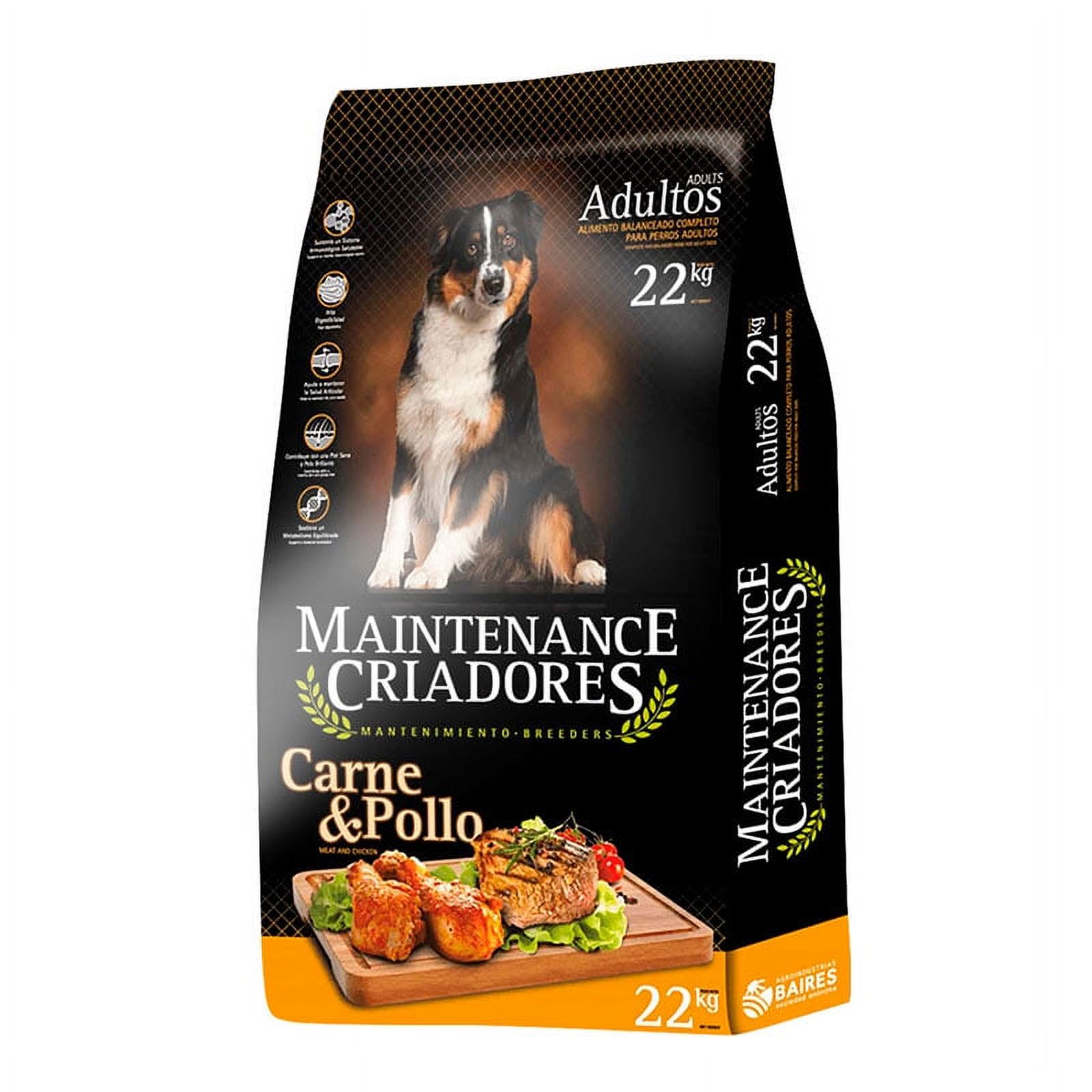 Maintenance criadores adulto carne y pollo es un alimento completo y balanceado indicado para perros adultos de todas las razas que aporta todos los nutrientes que su perro necesita para mantenerse saludable y activo. la combinación de carne y pollo, logra de maintenance criadores un alimento con proteínas de alto valor biológico, fibras, minerales, vitaminas y ácidos grasos escenciales.