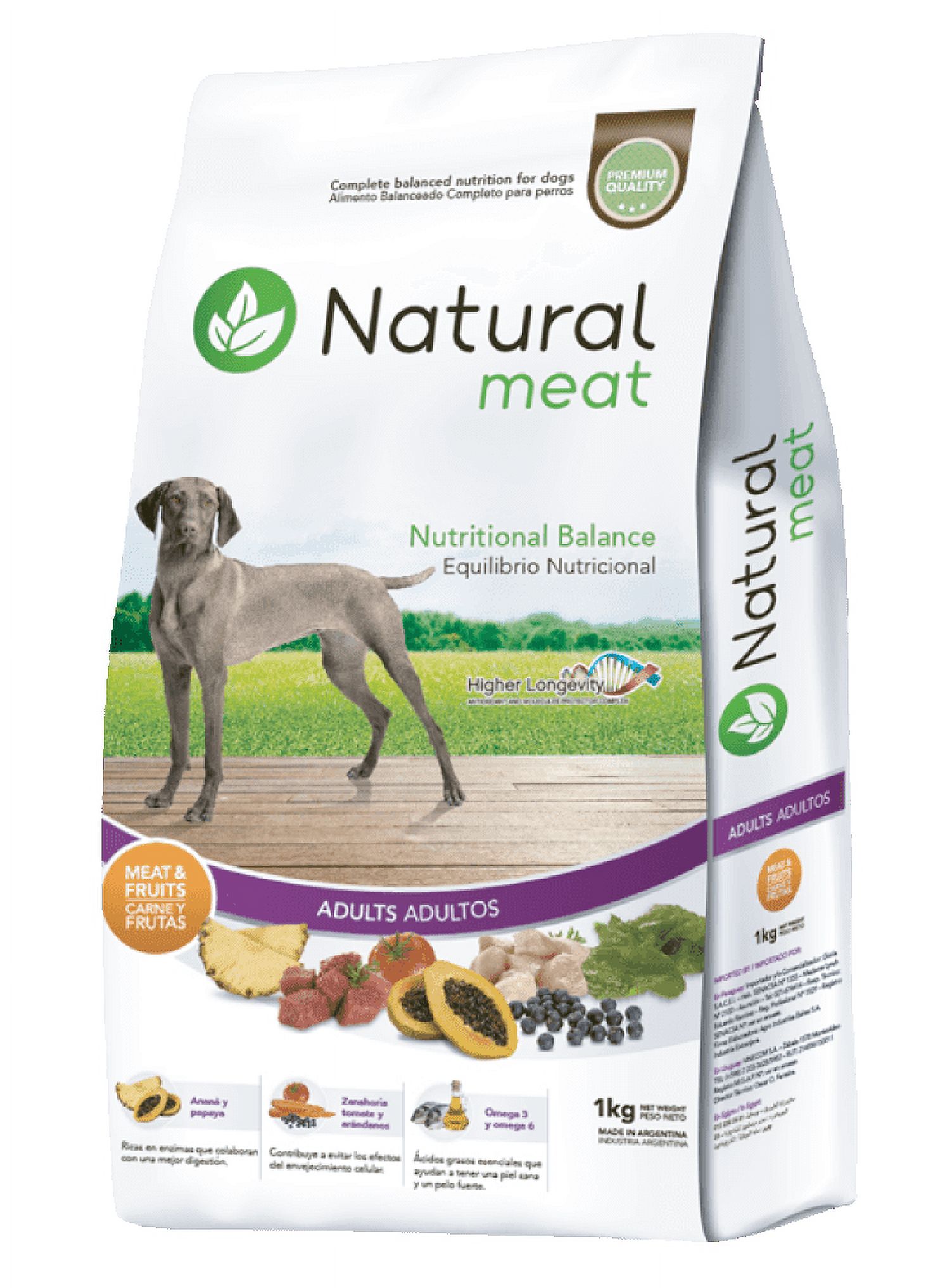 Formula innovadora con carne, frutas y verduras * antioxidantes para mayor longevidad * probioticos para la salud digestiva * enzimas proteoliticas aportadas por la piña y la papaya para mayor digestibilidad