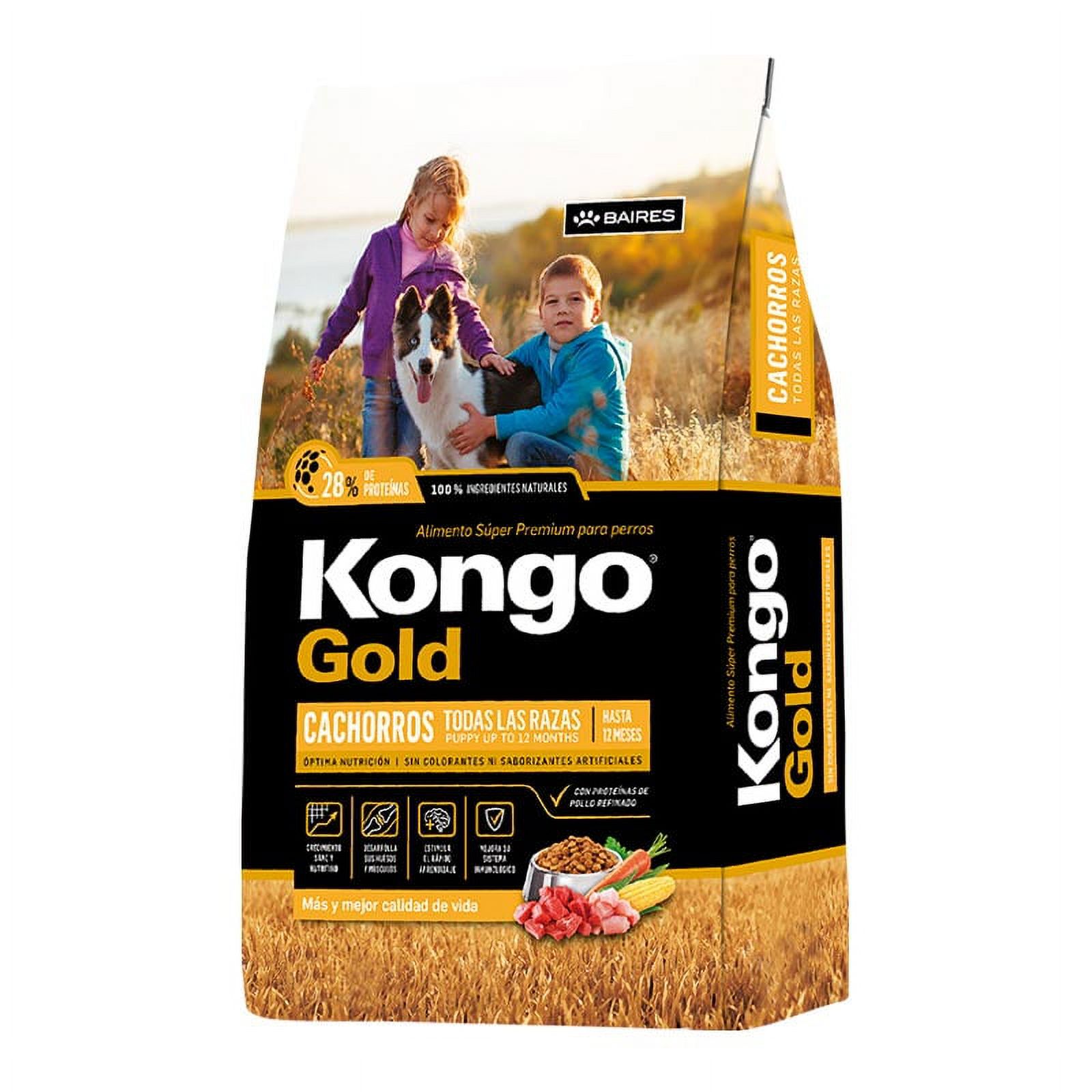 Kongo® gold. elaborado especialmente para cachorros de todas las razas. todos los alimentos kongo® están formulados con materias primas naturales de excelente calidad, sin colorantes ni saborizantes artificiales. estas características sumadas a su composición y concentración hacen de kongo® gold un producto súper premium único en su segmento.
