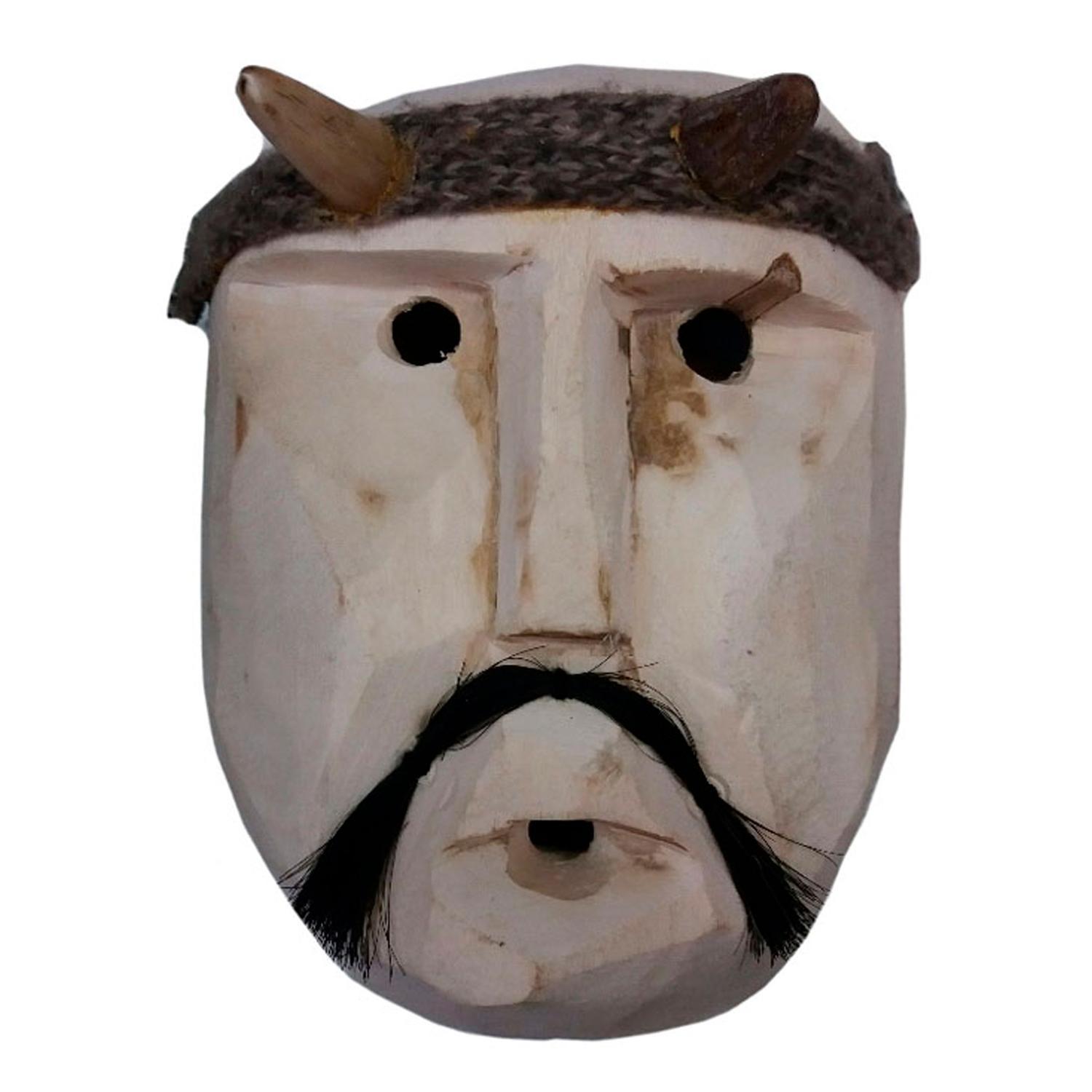 Collón mapuche tallado en madera usado en ceremonias nguillatún y machitún para alejar malos espíritus.
