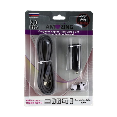 Amazing - Cargador Rápido Auto 1 Tipo Usb / 1 Tipo C + Cable Tipo C A Tipo C / 2 Metros | Lider Electrohogar