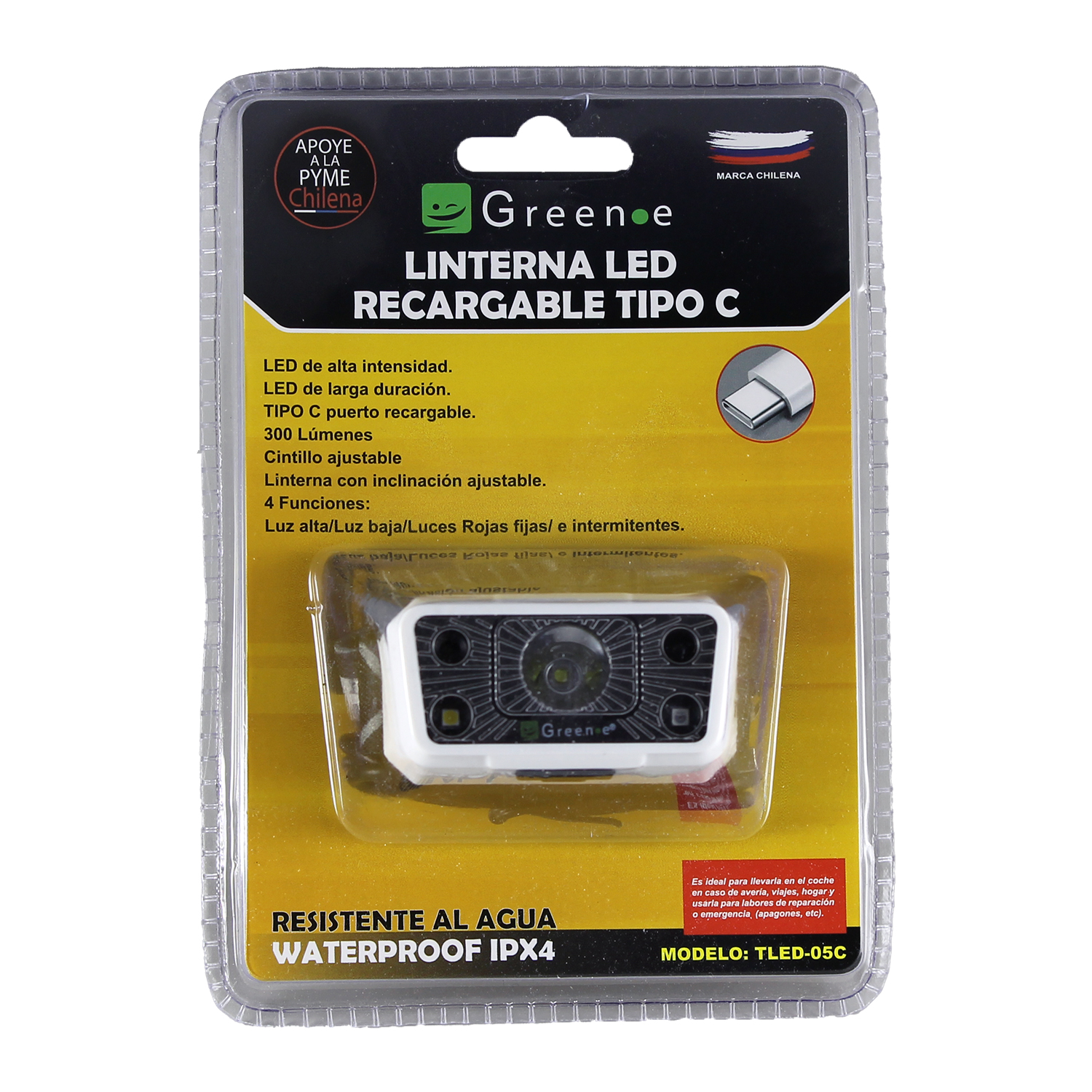 Green E - Linterna Cintillo Recargable Puerto C 300 Lumenes | Lider Electrohogar