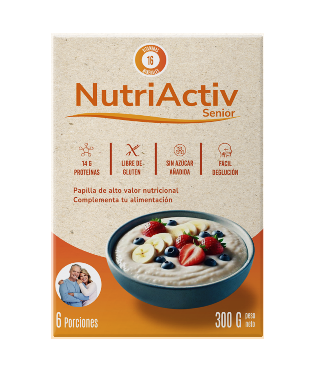 Nutriactiv de p&m foods es la papilla instantánea ideal para personas mayores o con requerimientos nutricionales especiales. sin gluten y con base vegetal, se disuelve en leche, bebida vegetal, yogurt o postres. aporta 400 calorías y 14 g de proteínas por porción, 16 vitaminas y minerales, fibra dietaria y aceite de chía con omega 3. ¡nutrición completa con delicioso sabor a plátano!