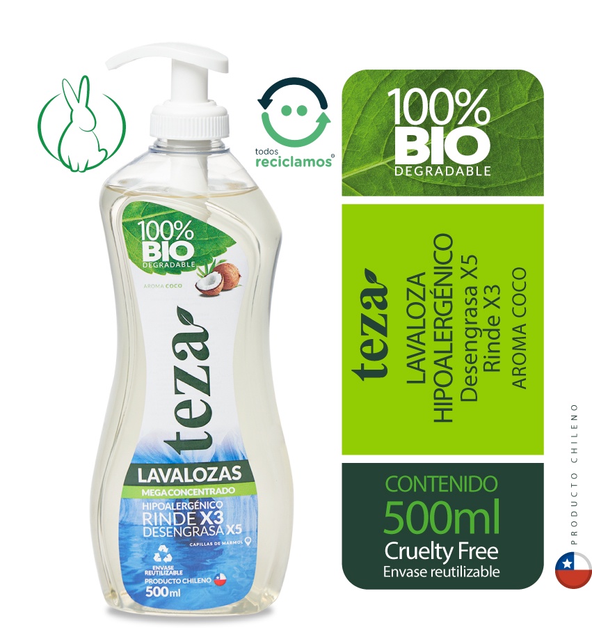Lavalozas Teza Biodegradable Concentrado Con Valvula Coco 500Ml | Lider Electrohogar