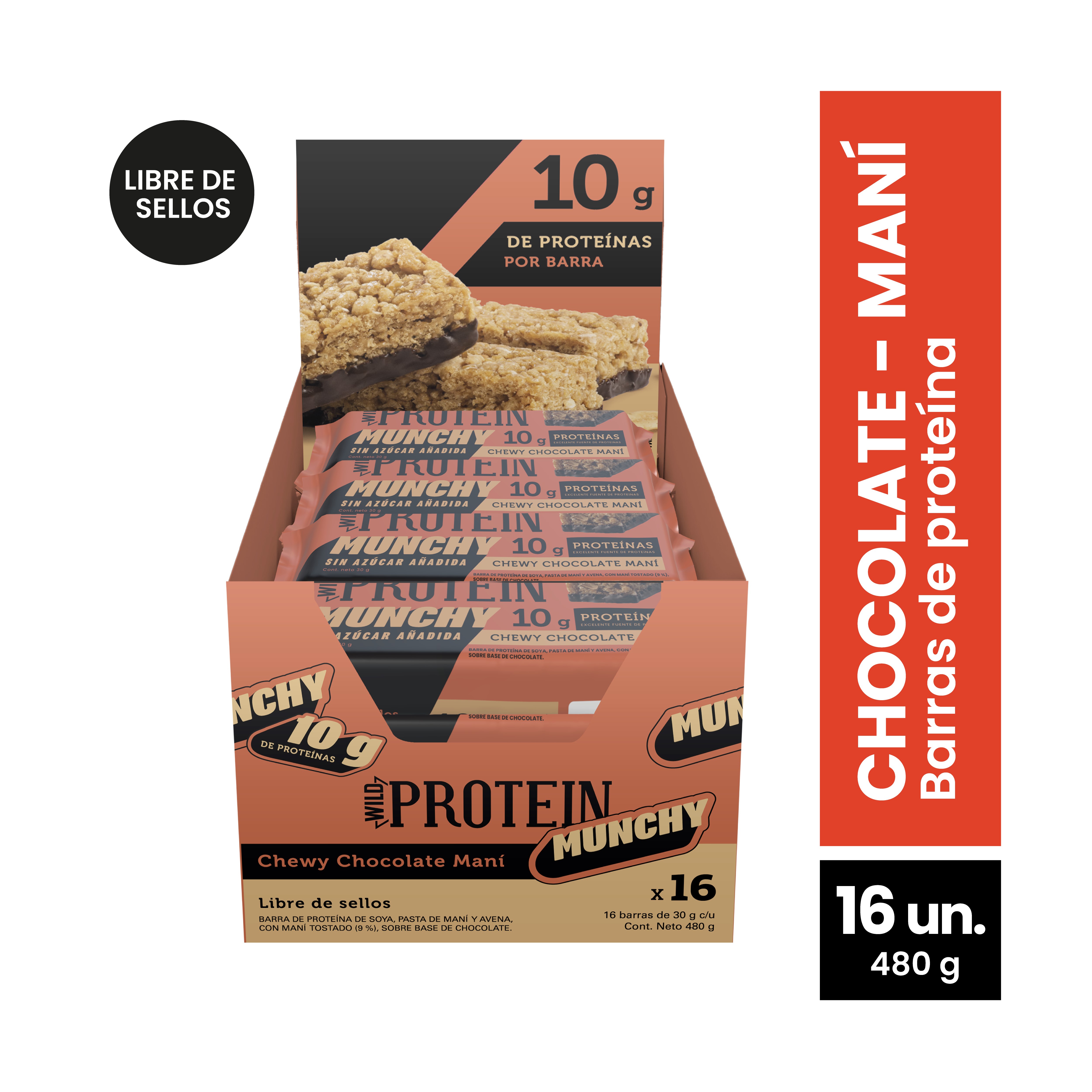 Wild Protein Bar Munchy Chocolate Mani 30G 16U | Lider Electrohogar