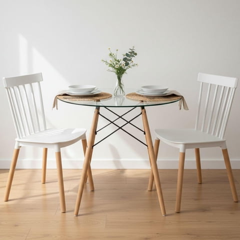 Pandalino - Comedor Mesa Elida 80 Cm + 2 Sillas Windsor Blanco | Lider Electrohogar
