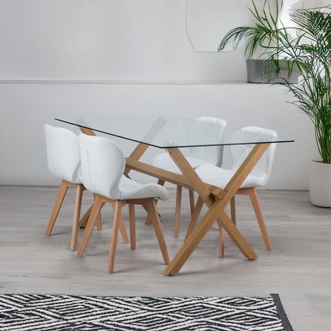 Pandalino - Comedor Moderno Mesa Xinia 130X80 + 4 Sillones Rubik Blanco