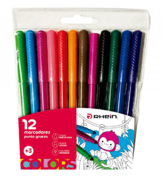 Plumones 12 colores punta gruesa rhein