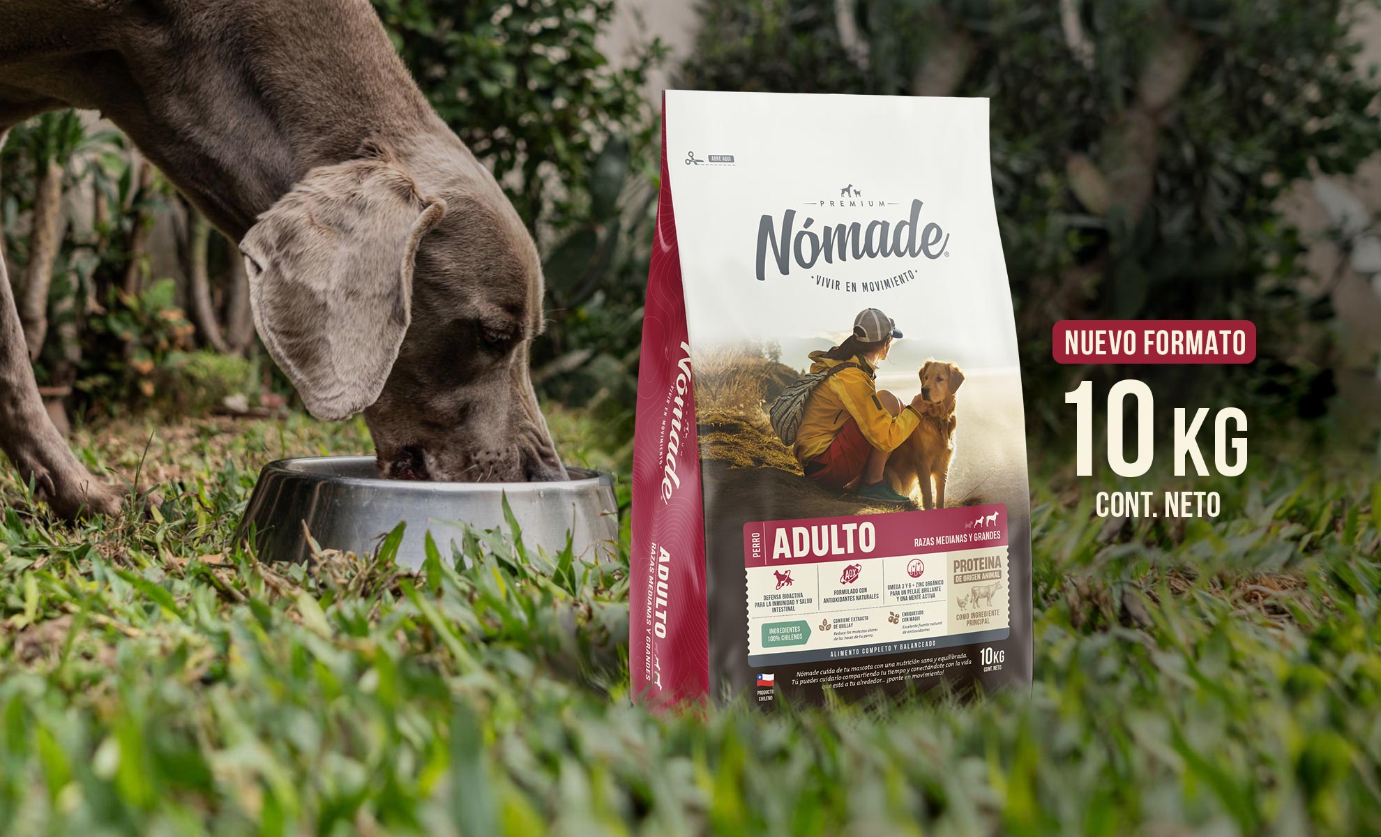 Nómade cuida de tu mascota con una nutrición sana y equilibrada. tú puedes cuidarlo compartiendo tiempo y conectándote con la vida que está a tu alrededor… ¡ponte en movimiento!