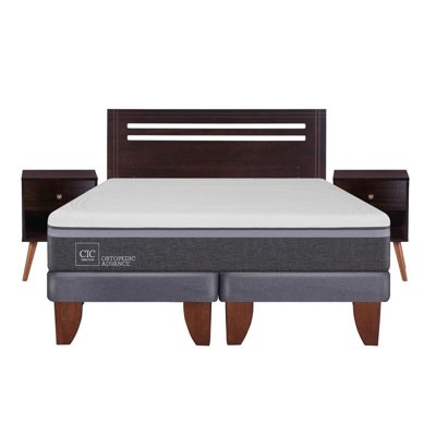 Cama Europea Ortopedic Advance 2 Plazas Base Dividida + Veladores Niger