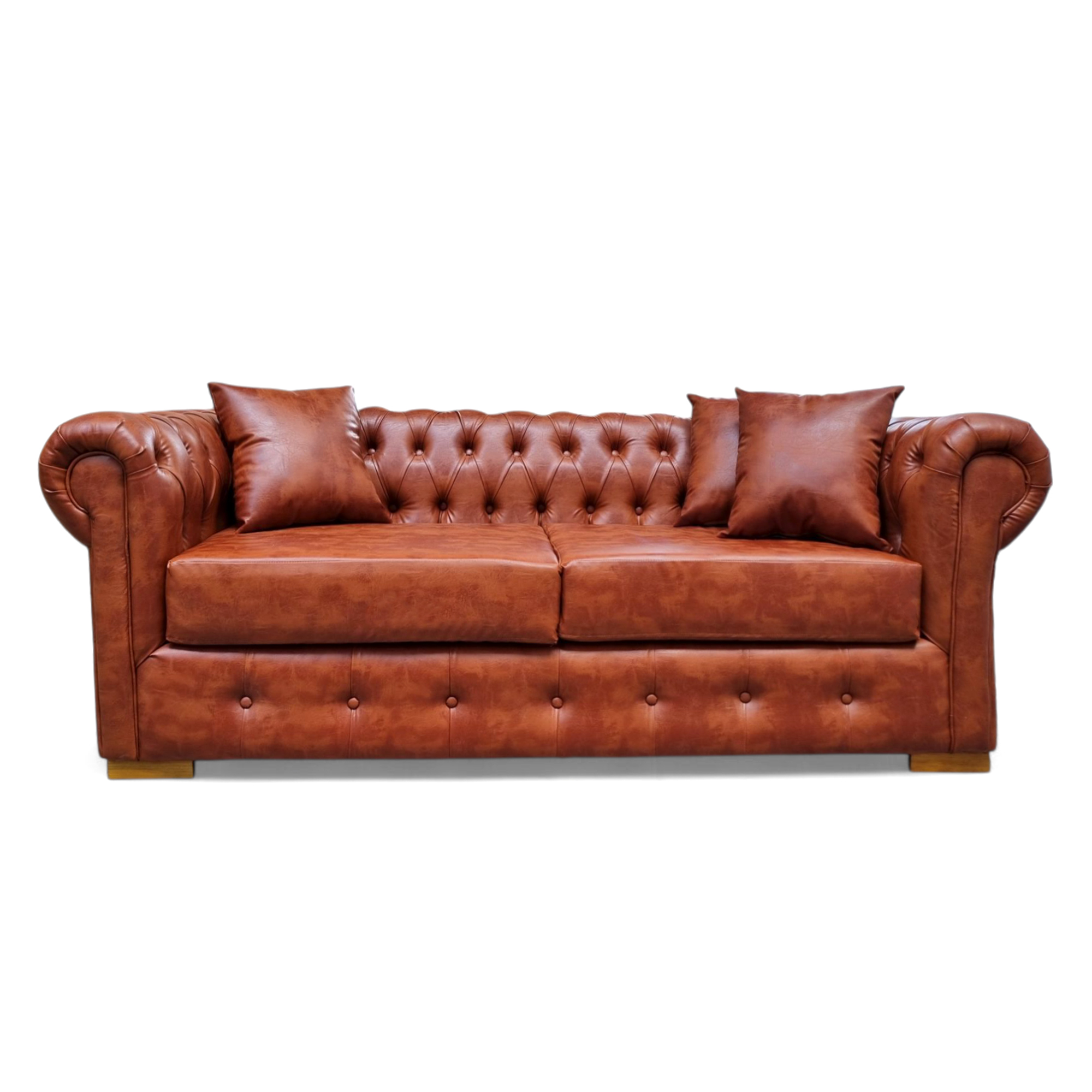 Mbc - Sofá Chesterfield 3 Cuerpos Cuero Sintético Pu Café | Lider Electrohogar