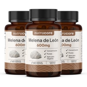 Melena de león 600mg - pack de 3 meses, 3x60 cápsulas vegetales nutracore. 100% natural sin excipientes.