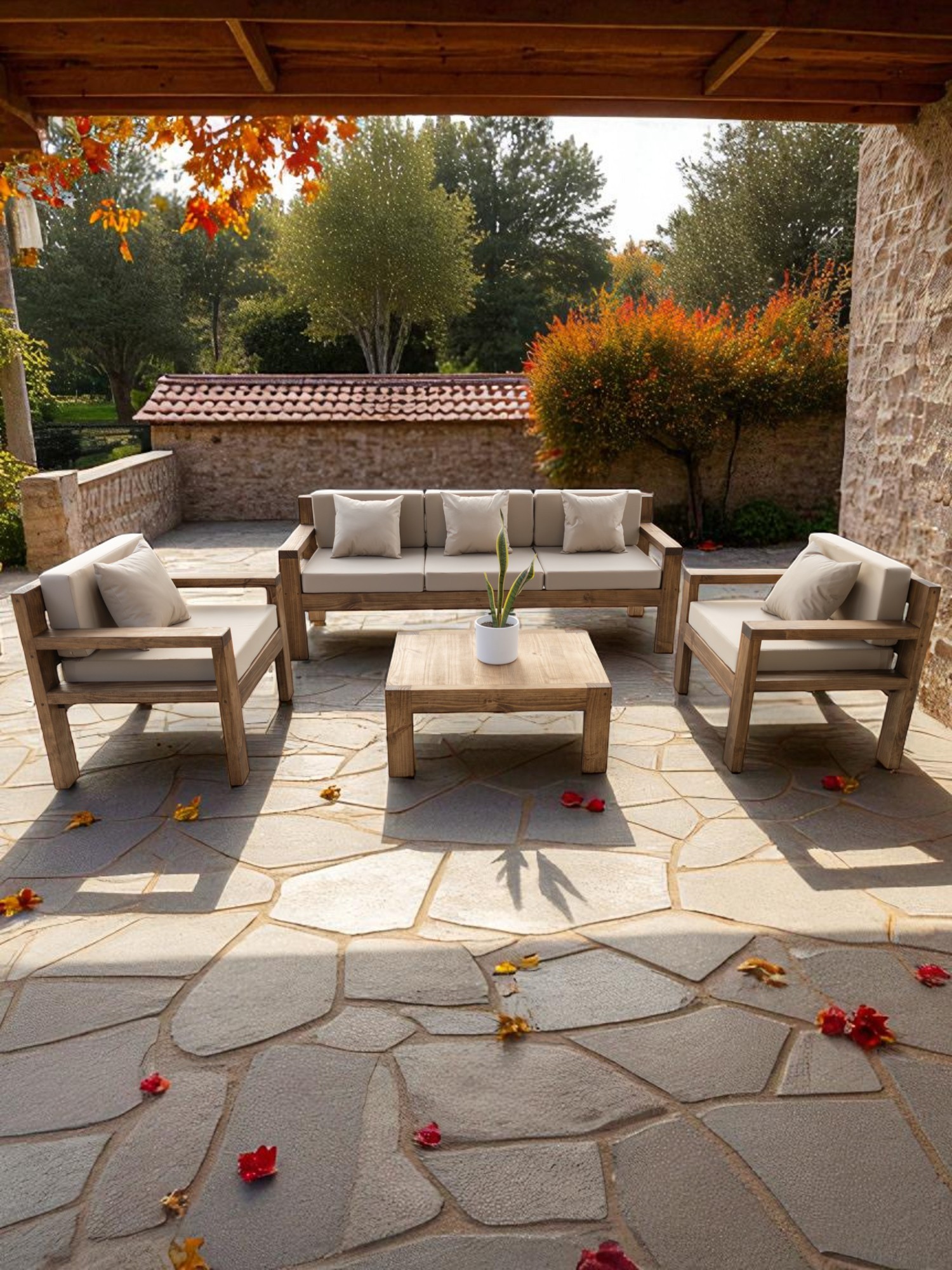 Miaruste - Terraza Rústica Modelo Ambar 5 Cuerpos Color Madera Roble Cojinería Beige | Lider Electrohogar