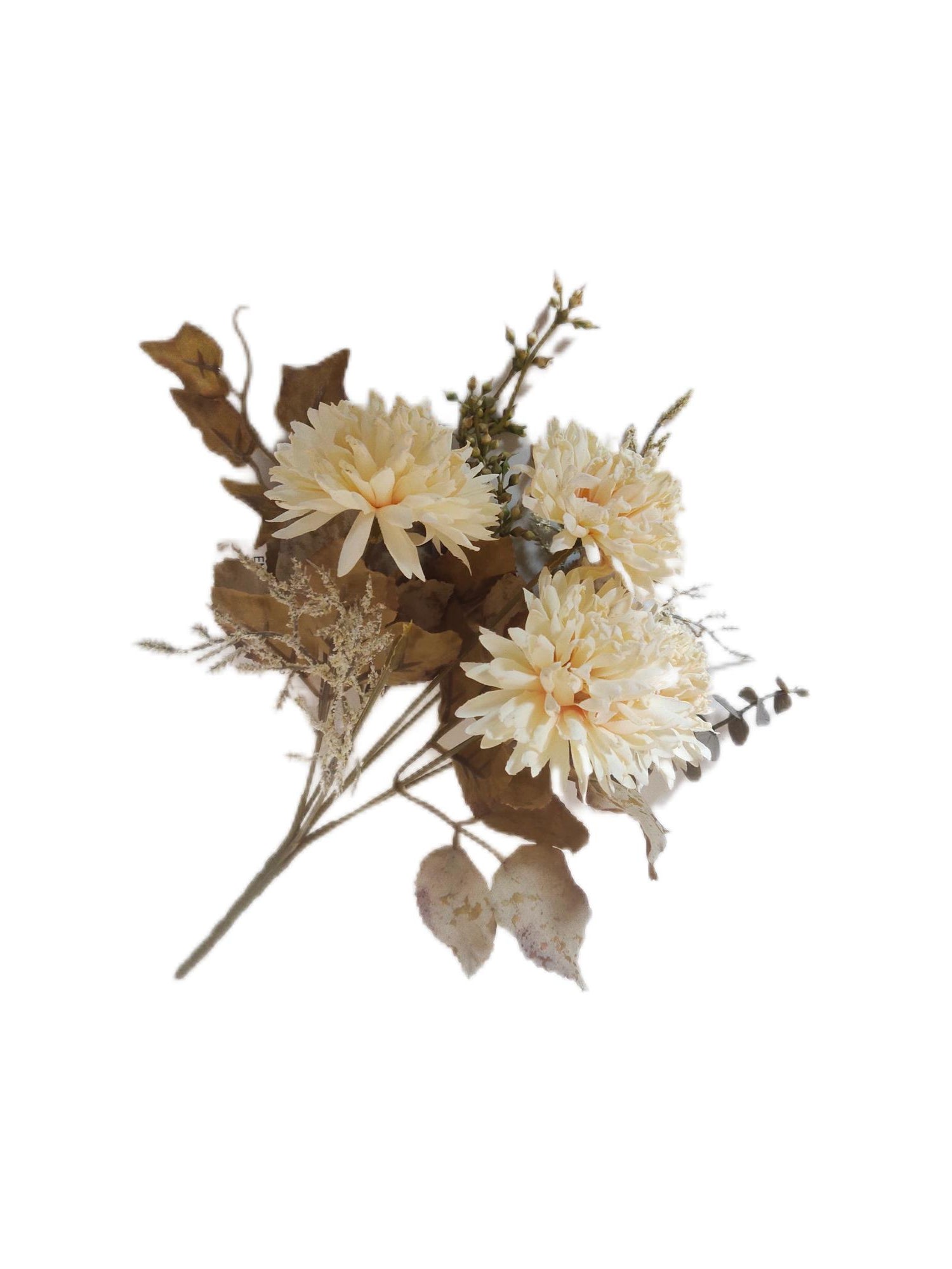 Ramo de crisantemos envejecidos color crema artificiales de 30 cm
