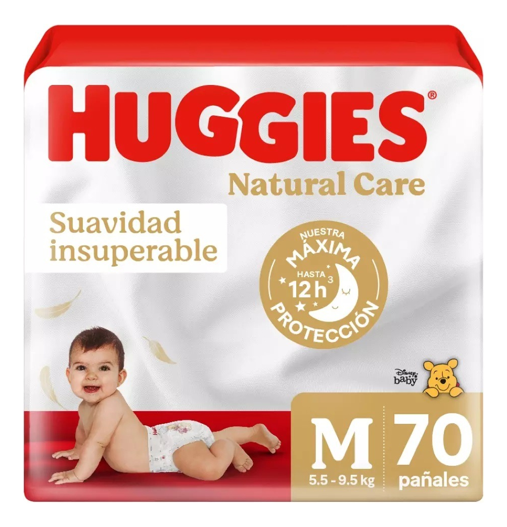Pañal huggies natural care m 70 unidades xtra-flex