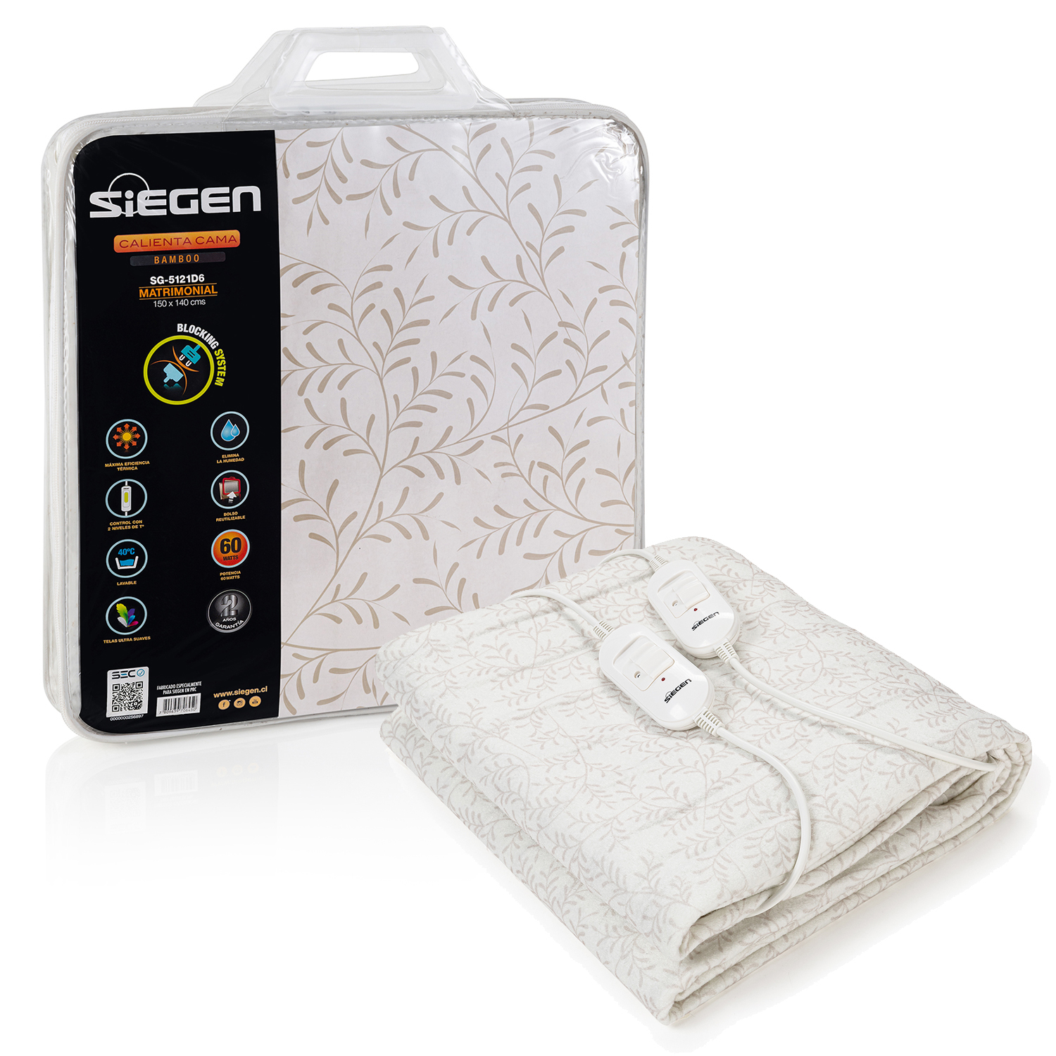 Calienta Cama Siegen Sg-5121D6 2 Plazas (150 X 140 Cms) | Lider Electrohogar