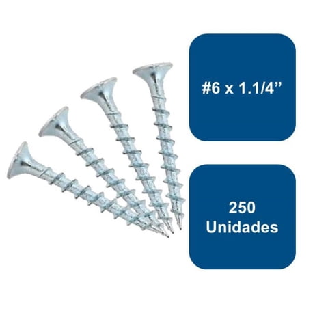 Anclajes - Tornillo Yeso Cartón Zincado Hilo Grueso #6 X 1.1/4"" 250Un | Lider Electrohogar