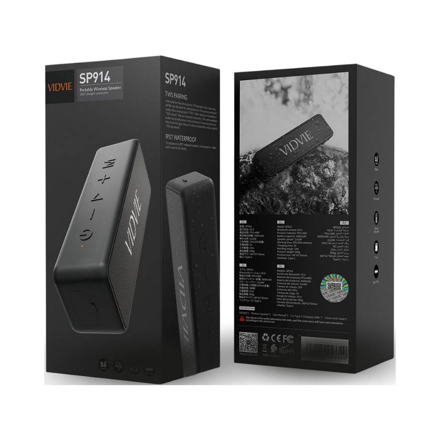 Déjate envolver por el sonido de las bocinas vidvie las cuales son a prueba de agua (ipx7) y cuentan con tecnologías que te brindan un sonido perfectamente equilibrado con agudos claros y bajos profundos. disfruta de 12 horas de música al 50% del volumen y 25 horas al 30% del volumen. altavoz impermeable ipx7 especialmente diseñado para uso en exteriores, sp914 tiene un cuerpo resistente y también es impermeable. el altavoz inalámbrico tiene una clasificación ipx7, lo que significa que puede bucear hasta 1 metro durante 30 minutos.