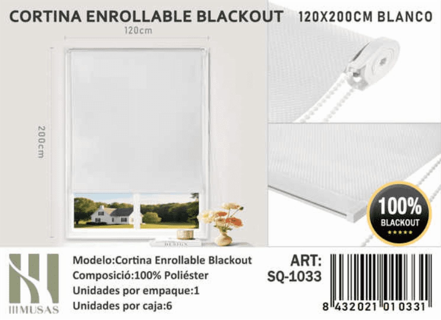 Cortina roller blackout 120x200cm blanco
