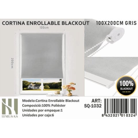 Todostore - Cortina Roller Blackout 80X200Cm ´Gris 1029