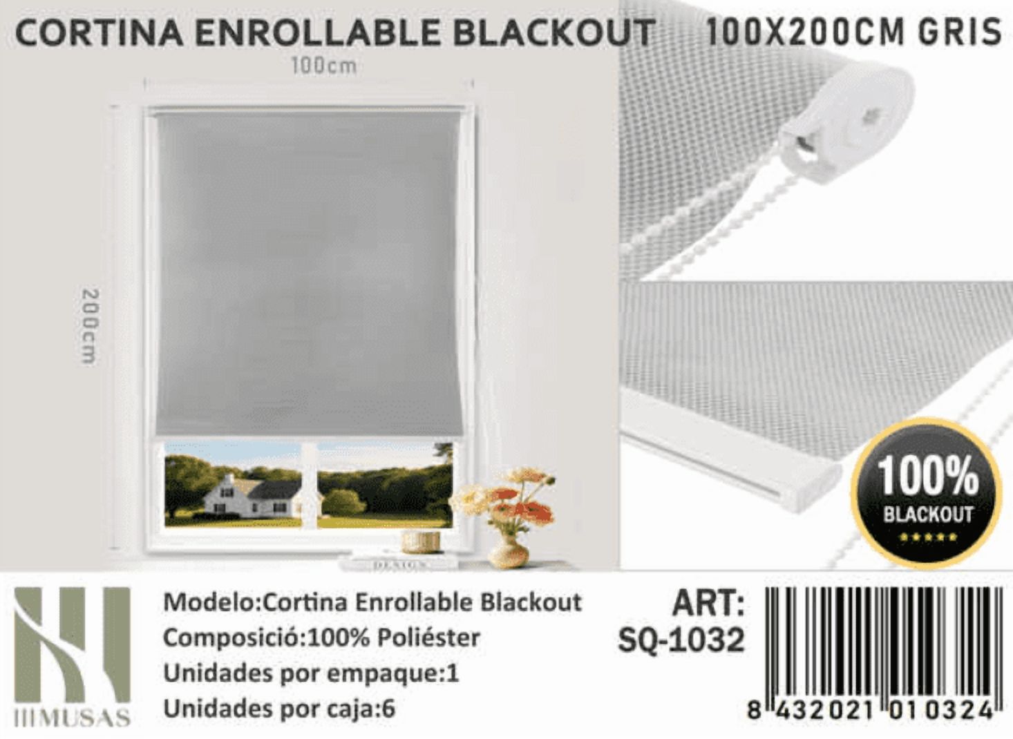 Cortina roller blackout 100x200cm color gris