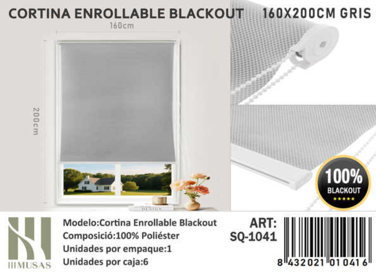 Tecnocasa - Cortina Roller Blackout 160X200Cm Gris-1041 | Lider Electrohogar