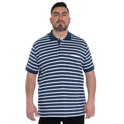 Kotting - Polera Jersey Listada Cuello Camisero Azul Azul 4Xl