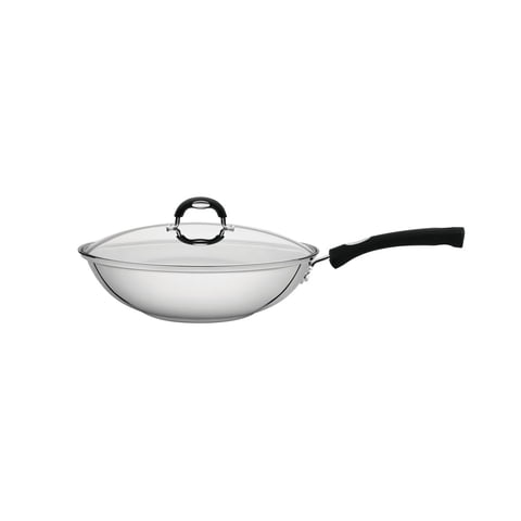 Wok Tramontina Astro Silicone De Acero Inoxidable Con Fondo Triple Y Tapa De Vidrio 28 Cm 3,3 L