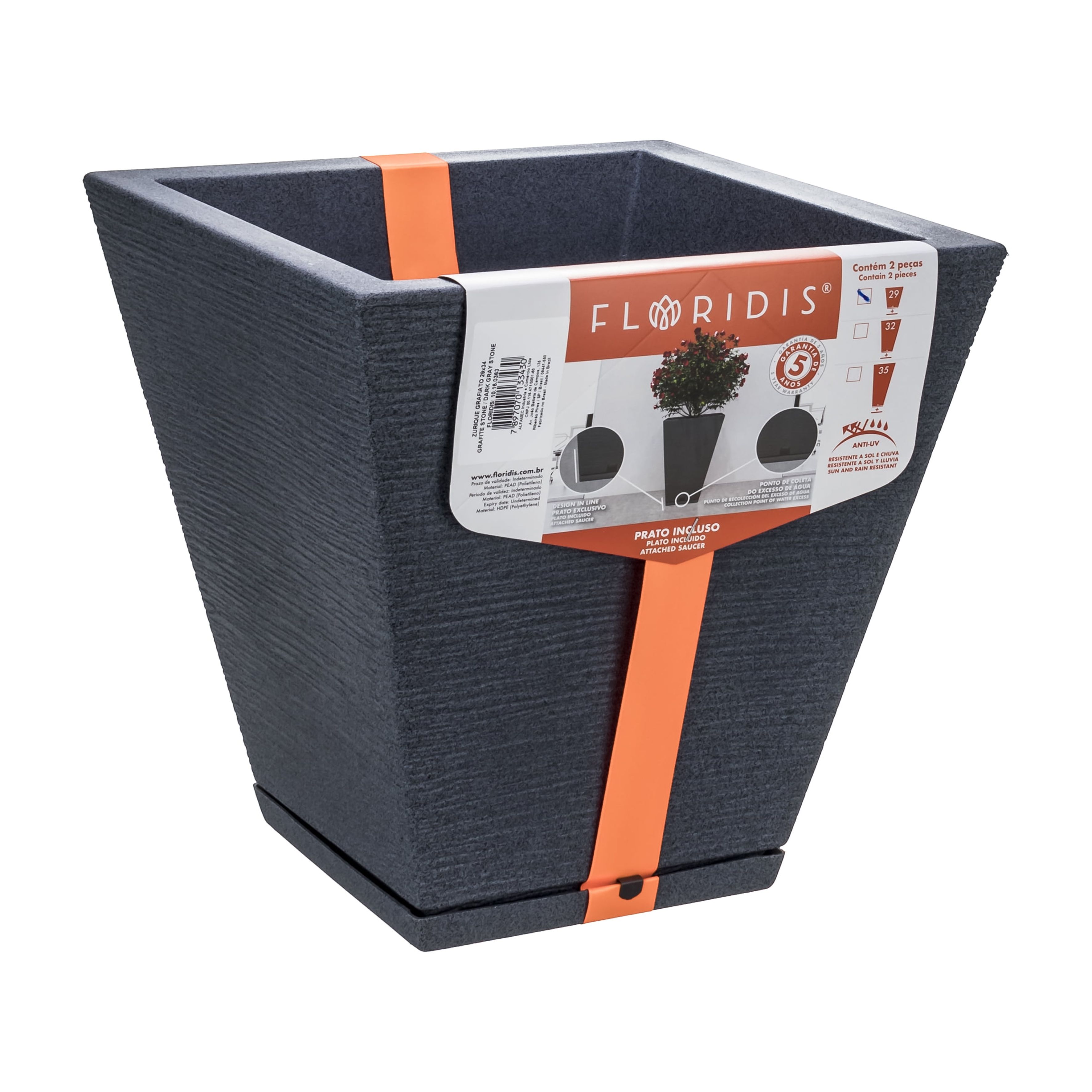 Floridis - Macetero Grafito Zurique 34Cm Alto Con Plato | Lider Electrohogar