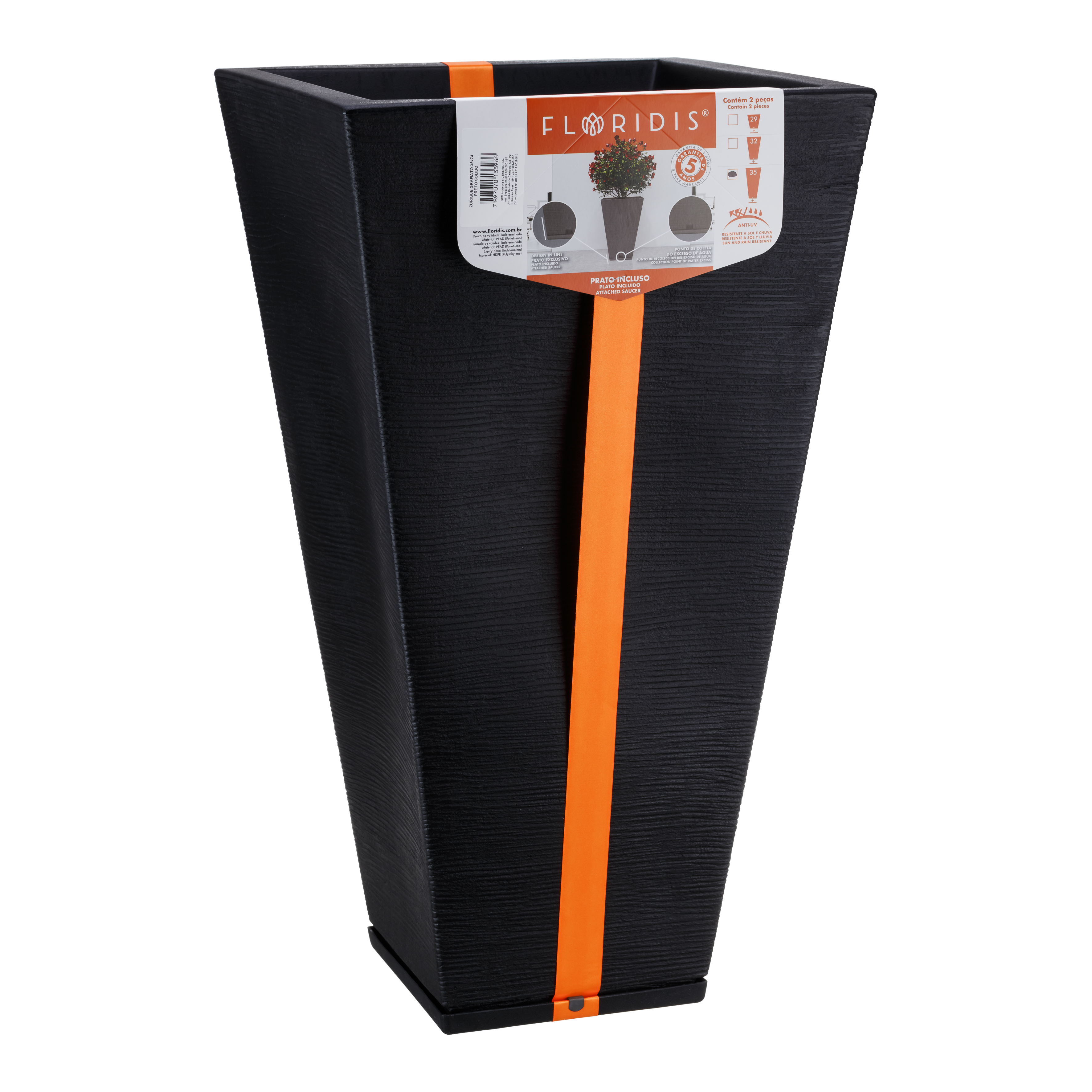 Floridis - Macetero Negro Zurique 34Cm Alto Con Plato