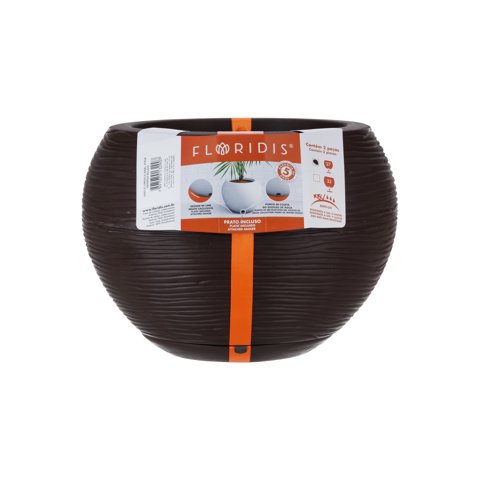 Macetero Floridis Marron Florencia 32 Cm Alto Con Plato