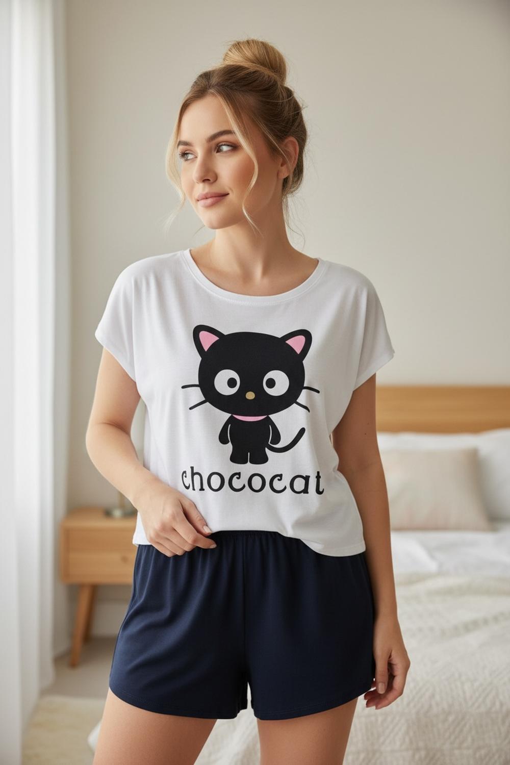 Pijama mujer chococat: estilo urbano y confort lleva tu descanso al siguiente nivel con este conjunto inspirado en chococat, el personaje más cool de sanrio. este pijama no es solo para dormir; su diseño moderno combina la tendencia del crop top con un look relajado, ideal para quienes buscan comodidad sin perder el estilo en sus momentos de relax. la polera de calce holgado ofrece una caída ligera y moderna, mientras que el short de calce regular equilibra el conjunto para un look coordinado, fresco y lleno de personalidad. especificaciones técnicas: • tipo de prenda: pijama de dos piezas. • estilo de la polera: manga corta estilo crop top con estampado de chococat. • calce de la polera: holgado / oversize. • estilo del short: calce regular con cintura elástica. • colores: polera blanca y short negro. • composición: 50% algodón / 50% poliéster. • origen: fabricado en chile. instrucciones de cuidado: • lavar en agua fría para proteger los contrastes de color. • no utilizar secadora para mantener la estructura del crop top. • no planchar directamente sobre el estampado de chococat. beneficios: • tendencia y estilo: el corte tipo crop top holgado le da un aire juvenil y urbano, perfecto para usar como homewear mientras descansas o haces tus actividades favoritas en casa. • frescura superior: gracias a su polera más corta y holgada, este pijama permite una mayor ventilación, siendo ideal para las noches más calurosas. • suavidad duradera: la mezcla de algodón y poliéster asegura que la prenda no se deforme y mantenga su suavidad lavado tras lavado. • compromiso local: confeccionado con dedicación en chile, apoyando la industria nacional y garantizando terminaciones de alta calidad. ¡súmate a la tendencia con chococat y disfruta de un descanso con mucho estilo y actitud!