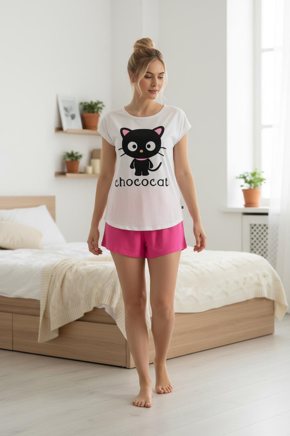 Pijama mujer chococat: contraste vibrante y suavidad dale un toque de color y energía a tus noches con este encantador conjunto de chococat. este diseño destaca por su elegante contraste entre el tono neutro de la polera y el vibrante color del short, creando un look moderno, femenino y lleno de vida, ideal para quienes buscan un descanso con estilo. el conjunto combina una polera de calce regular que se adapta cómodamente al cuerpo con un short coordinado, ofreciendo un equilibrio perfecto entre estética y funcionalidad. especificaciones técnicas: • tipo de prenda: pijama de dos piezas. • estilo de la polera: manga corta con estampado de chococat. • color de la polera: ivory (marfil). • calce de la polera: regular. • estilo del short: calce regular con cintura elástica. • color del short: fucsia. • composición: 50% algodón / 50% poliéster. • origen: fabricado en chile. instrucciones de cuidado: • lavar en agua fría para mantener la intensidad del fucsia y la pureza del ivory. • no utilizar secadora para preservar las fibras de algodón. • no planchar directamente sobre el estampado. beneficios: • paleta de colores moderna: la combinación del color ivory con el fucsia vibrante aporta luminosidad y un aire renovado a tu colección de ropa de dormir. • textura ligeramente elástica: gracias a su mezcla de materiales, la prenda se siente suave al contacto con la piel y mantiene su forma original después de muchos usos. • calce ergonómico: el diseño de calce regular en ambas piezas asegura que el pijama no apriete ni moleste durante la noche, permitiendo un sueño reparador. • calidad de confección: hecho en chile bajo altos estándares de costura, asegurando una prenda resistente y de larga vida útil. ¡añade un destello de color a tus sueños con este conjunto de chococat y disfruta del confort hecho en chile!