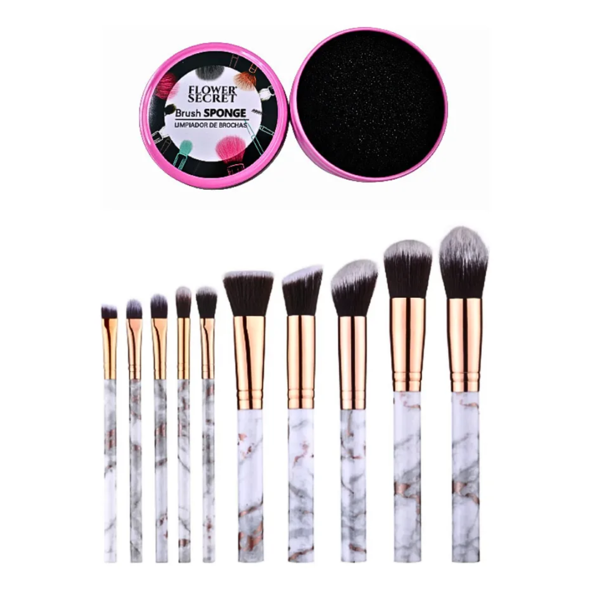 Flower Secret - Pack 10 Brochas Para Maquillaje Diseño Mármol Blanco + Limpiador | Lider Electrohogar
