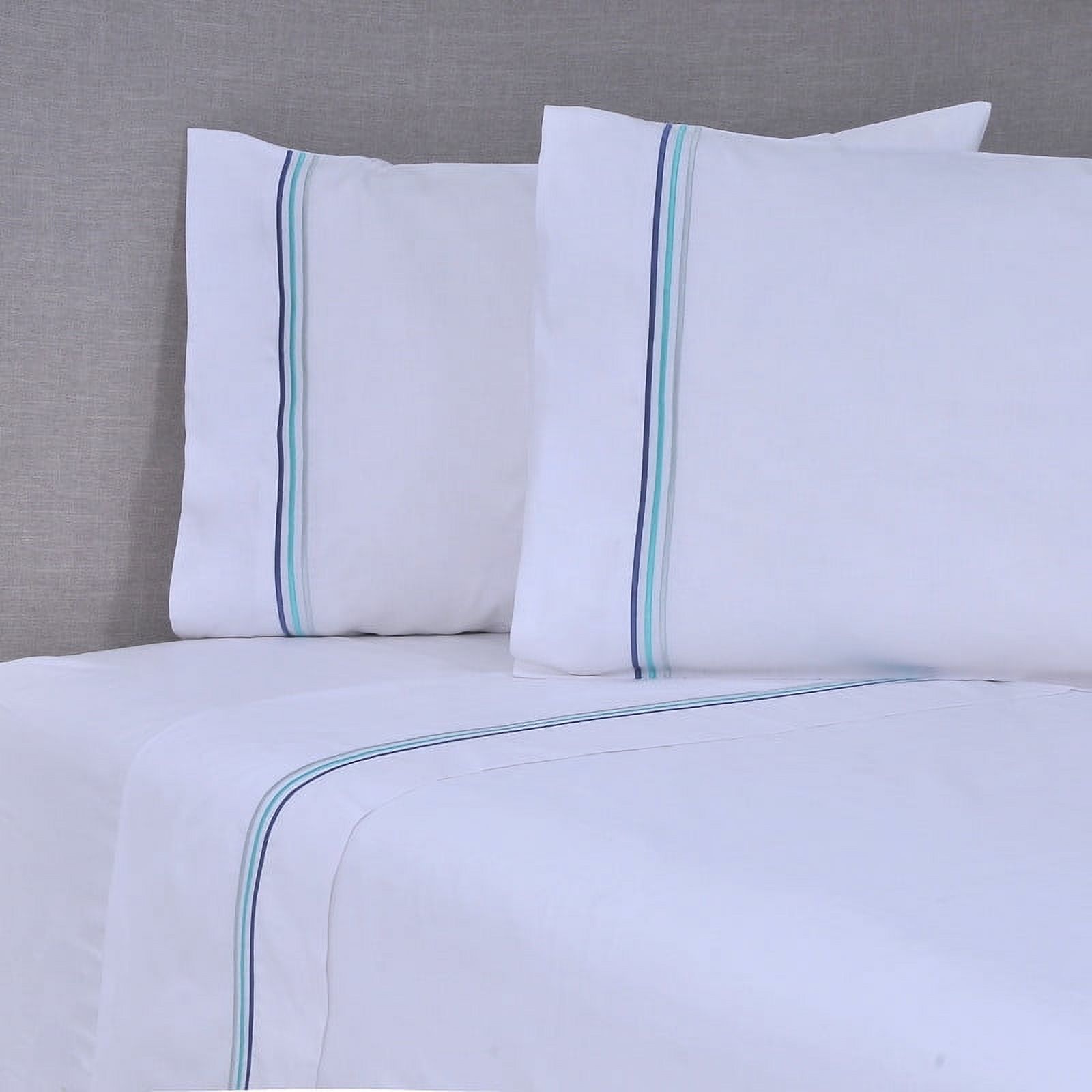 Sábana Bordada. 144 Hilos 2 P Line Azul