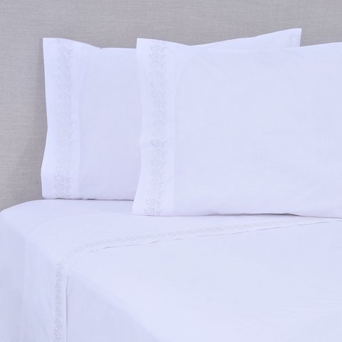Sábana Bordada 180 Hilos King Puntos Plata