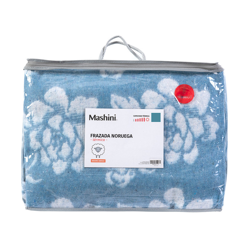 Frazada térmica noruega 1.5 p celeste. marca: mashini. medida: 1.5 plazas. color: celeste. composición: 70% acrilico 30% algodón