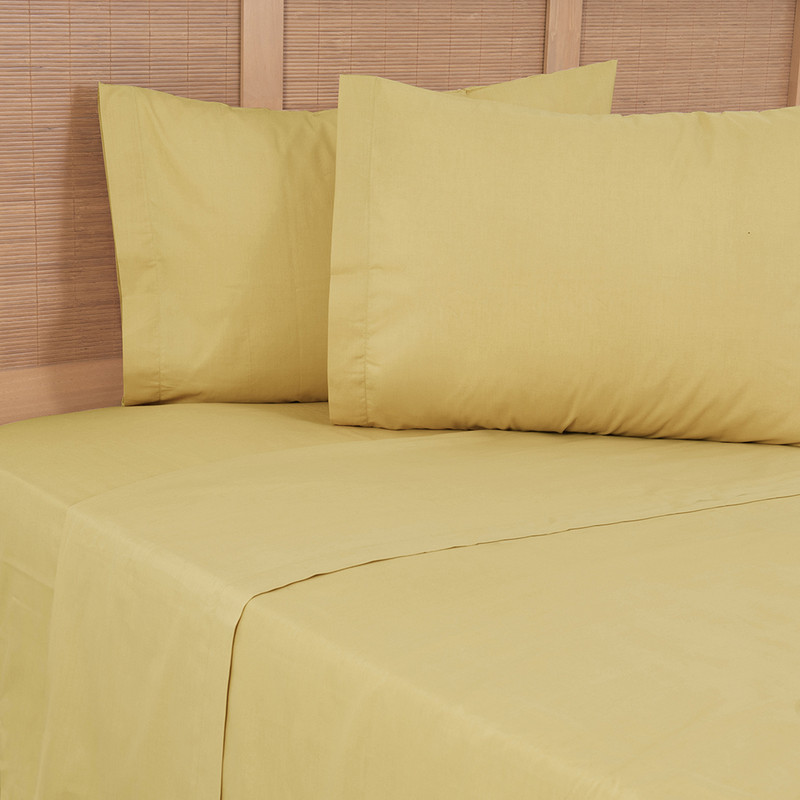 Sabana 144 hilos lisa 2 p mostaza