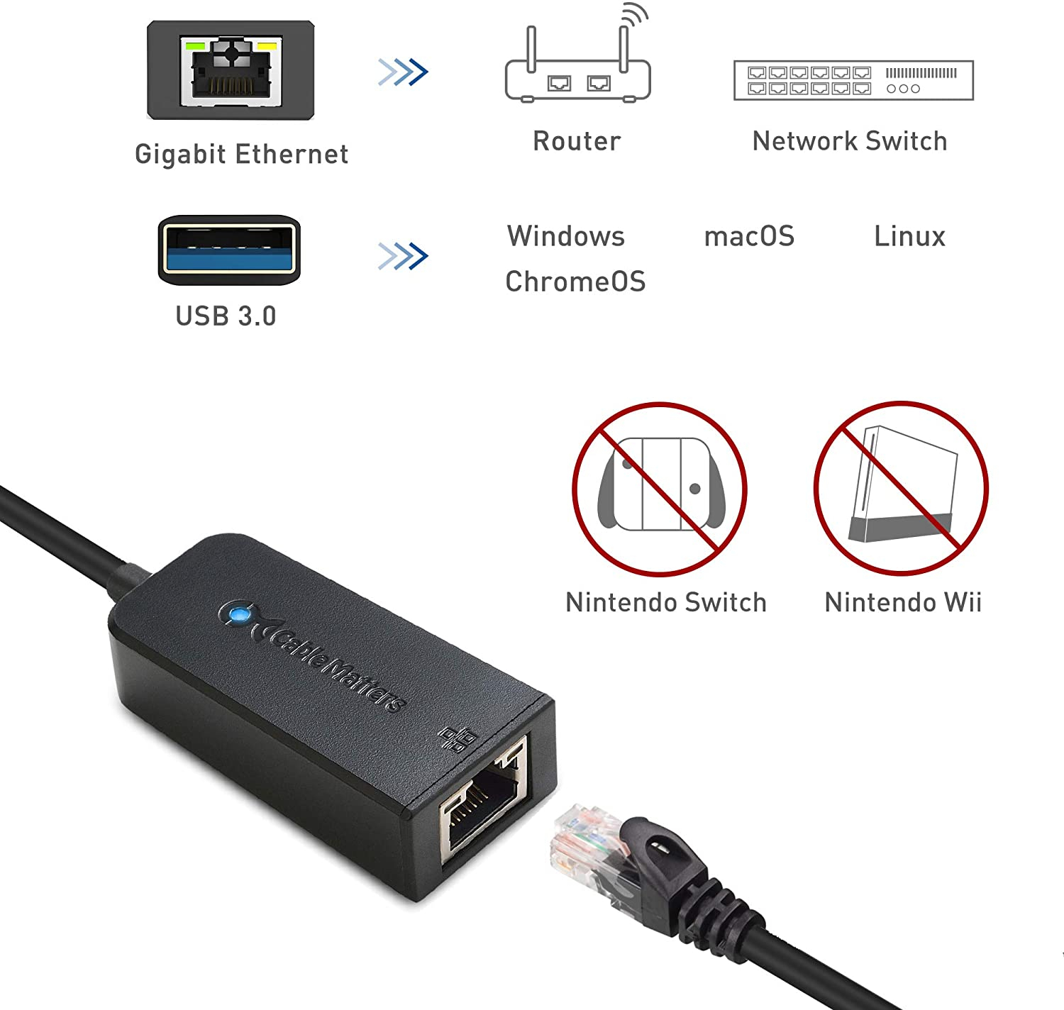 Cable matters usb to ethernet adapter (usb 3.0 a ethernet) compatible con 10/100/1000 mbps ethernet network en negro
